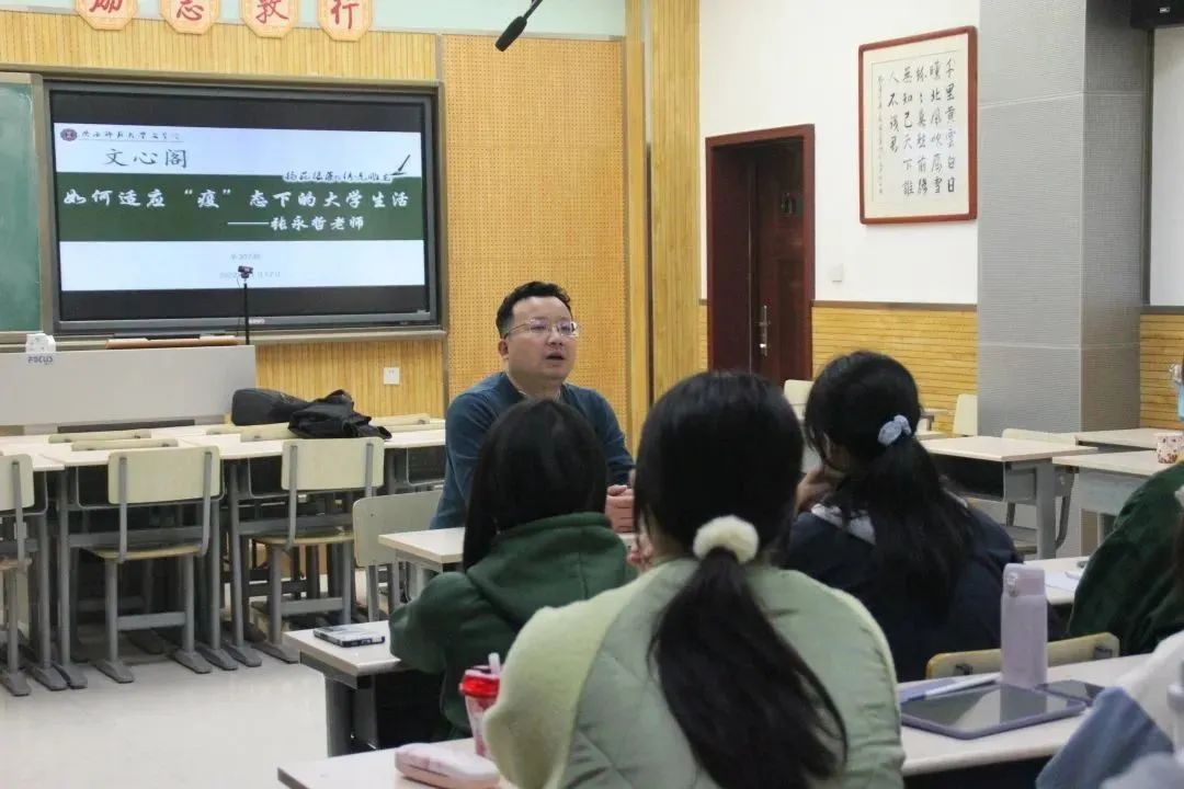 11月17日晚,本学期第5期(总第307期)文心阁师生面对面交流活动顺利举行,js333线路检测中心讲师、现代汉语教研室的张永哲老师应邀参加。本次活动中,张老师围绕“如何适应‘疫’态下的大学生活”这一主题,与同学们展开了探讨交流,整场交流活动轻松而有趣,同学们受益匪浅。