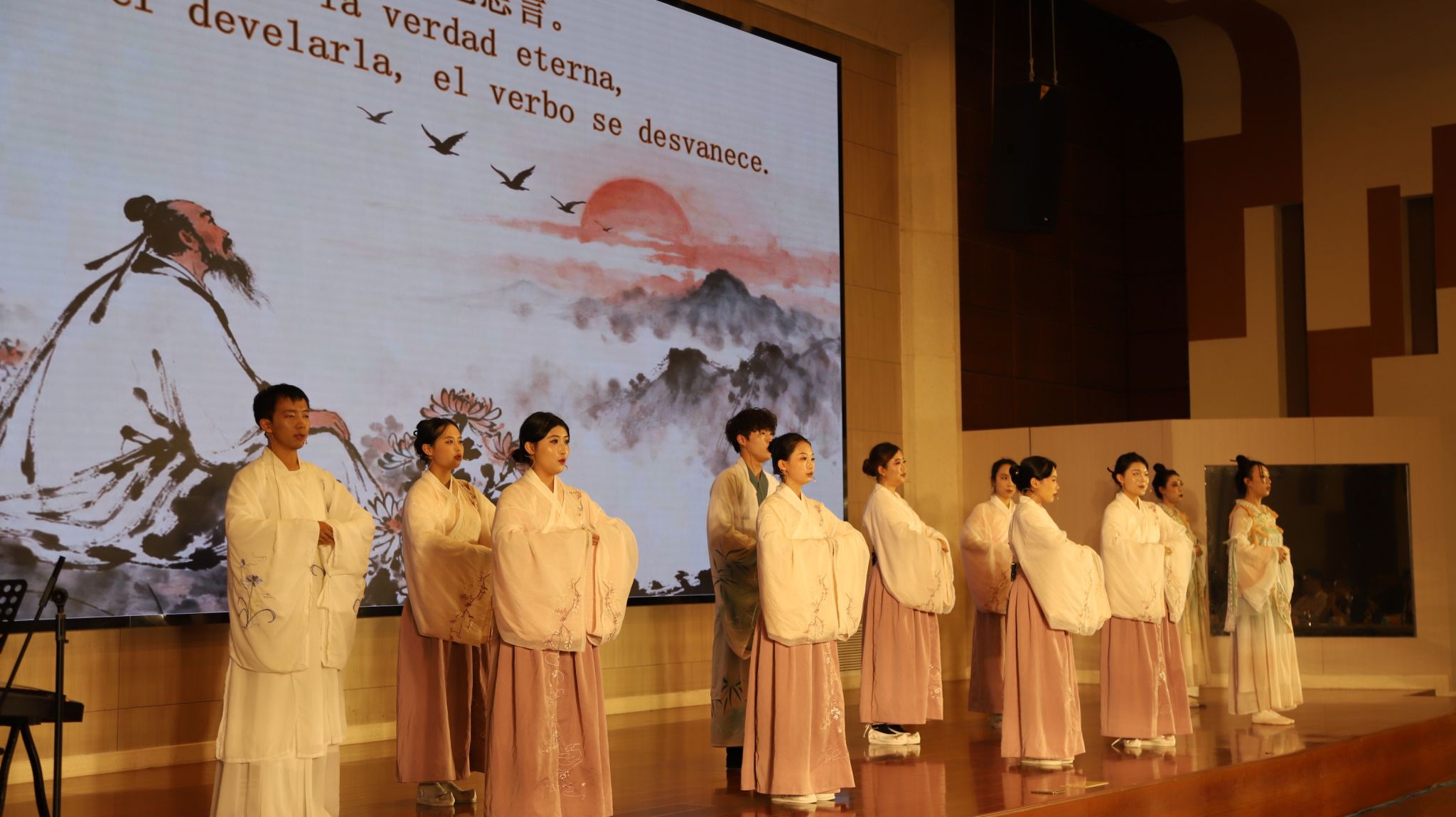 活动期间,js333线路检测中心师生准备了精彩的表演,古典舞《生机勃勃》拉开活动大幕,秦风诗社古典诗词吟诵《东篱酒影与花间月影》、民乐演奏《盛世国乐》与书法创作表演《诗书传谊·舞韵同心》先后亮相,杨国庆老师现场挥毫,写下“海内存知己,天涯若比邻”,并向在场的中拉诗人赠送墨宝,传递出师大人和js333线路检测中心师生跨越山海的文化情谊与美好祝愿。