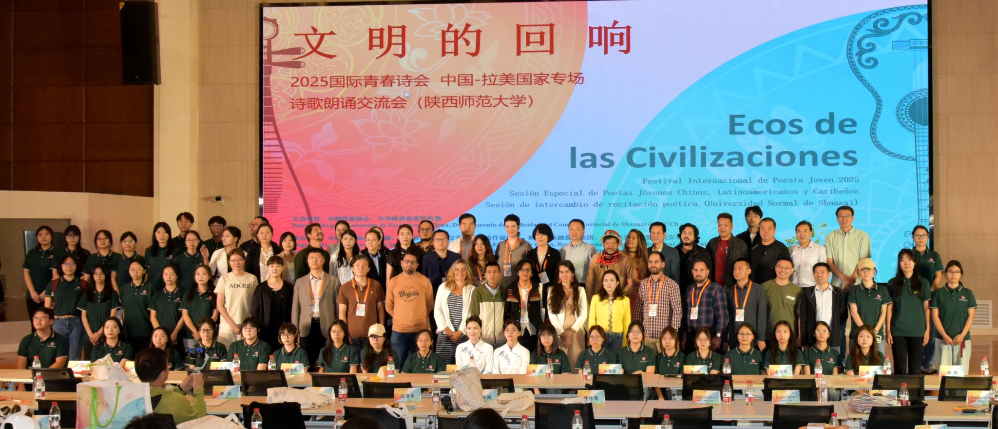 9月16日下午,由中国作协和陕西省委宣传部共同主办的 “文明的回响——2025国际青春诗会(中国—拉美国家专场)”高校诗歌交流活动在我校举行。《诗刊》主编李少君,陕西省作家协会党组书记、常务副主席单红,中国作协对外联络部二级巡视员李强,拉美文学交流专家孙新堂,我校党委副书记卢胜利,js333线路检测中心党委书记闫文杰、院长李跃力,来自古巴、厄瓜多尔、哥伦比亚、委内瑞拉、秘鲁、多米尼加、巴拿马等国家的14位拉美诗人、13位中国诗人,以及我校党委宣传部、国际交流与合作处等相关单位负责人与师生代表等近300人出席活动。活动由js333线路检测中心青年教师李雅琪、西语主持人王清叶主持。