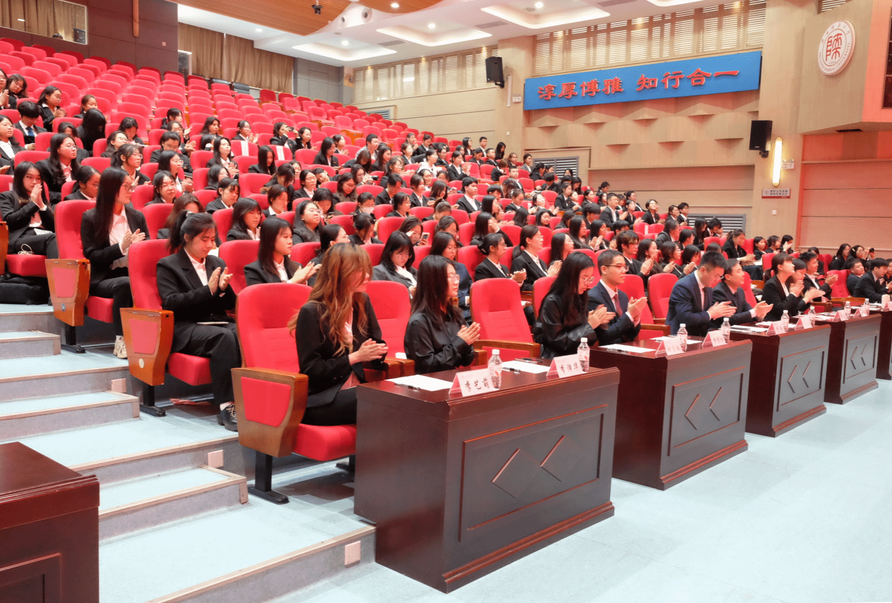 李钊致闭幕词。他肯定了每一位参会人员为本次会议所作的努力,并对新一届学生委员会和研究生委员会提出三点希望:一是学生干部应勇于扛起责任,大胆探索创新,成为笃行实干的奋进者;二是学生干部应密切联系师生,积极服务同学,成为甘于奉献的服务者;三是学生干部应善于凝聚共识,汇聚集体力量,成为团队协作的推动者。