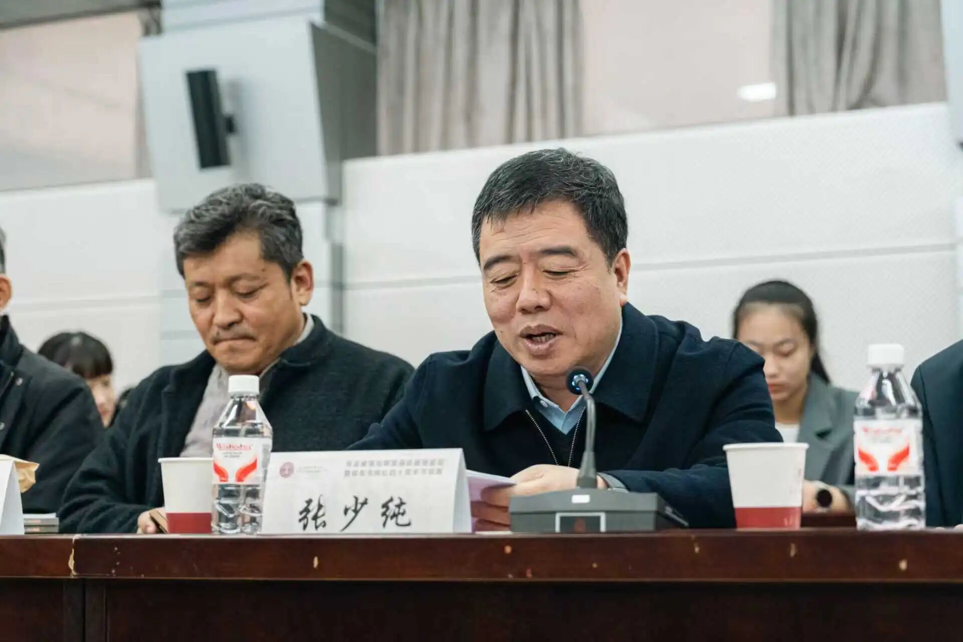 嘉宾代表、西安市委社会工作部部长、84级校友张少纯致辞。他回顾了砚友书画社的发展历程,并结合个人学习书法的经历与体会,强调书法学习要重视继承,保持定力,在经典的反复临摹中沉淀,克服浮躁,真正领会传统的精髓。